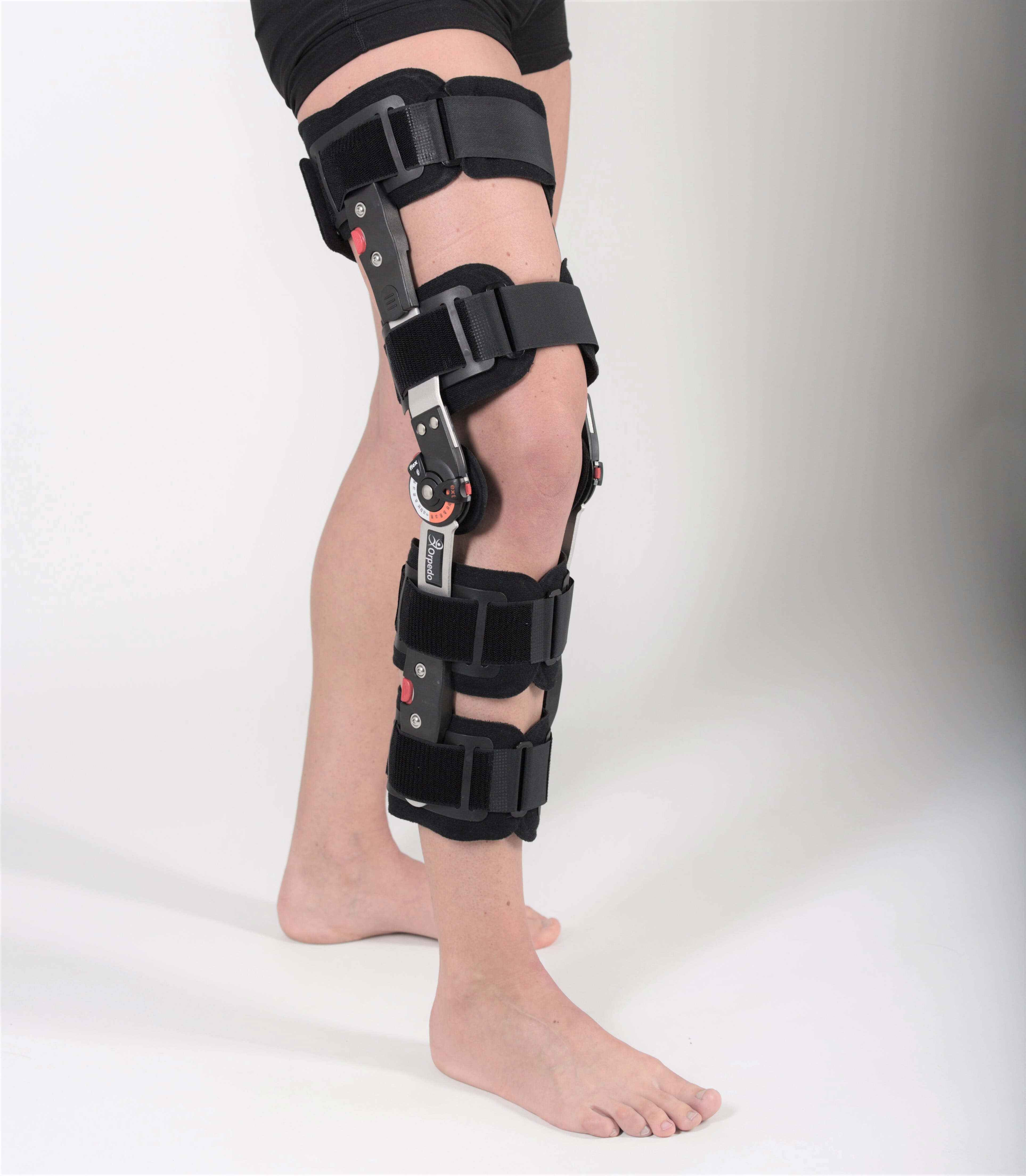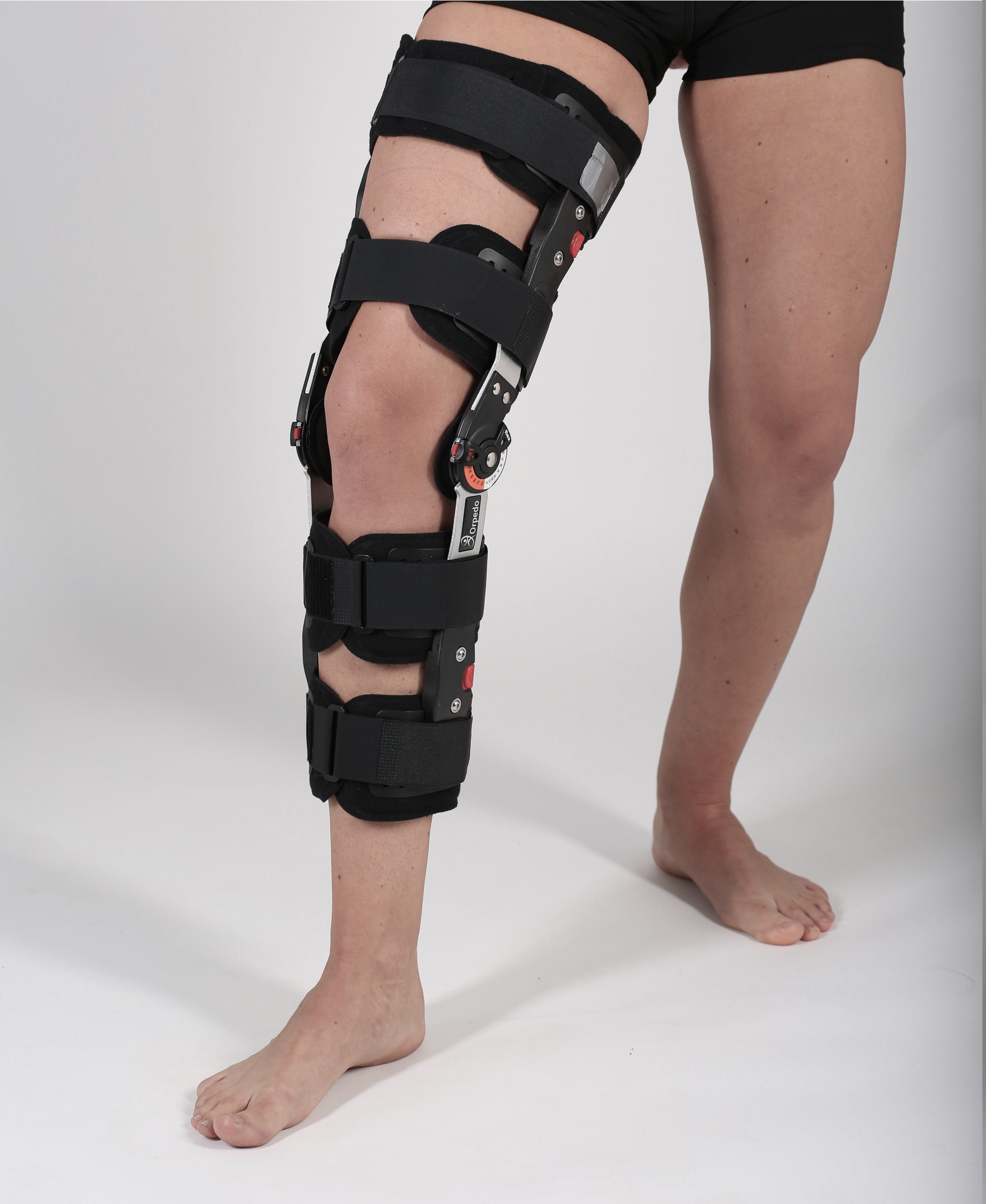 jeweils zwei Klettverschlüsse oberhalb und unterhalb des Kniegelenks wird auf die Anatomie des zu versorgenden