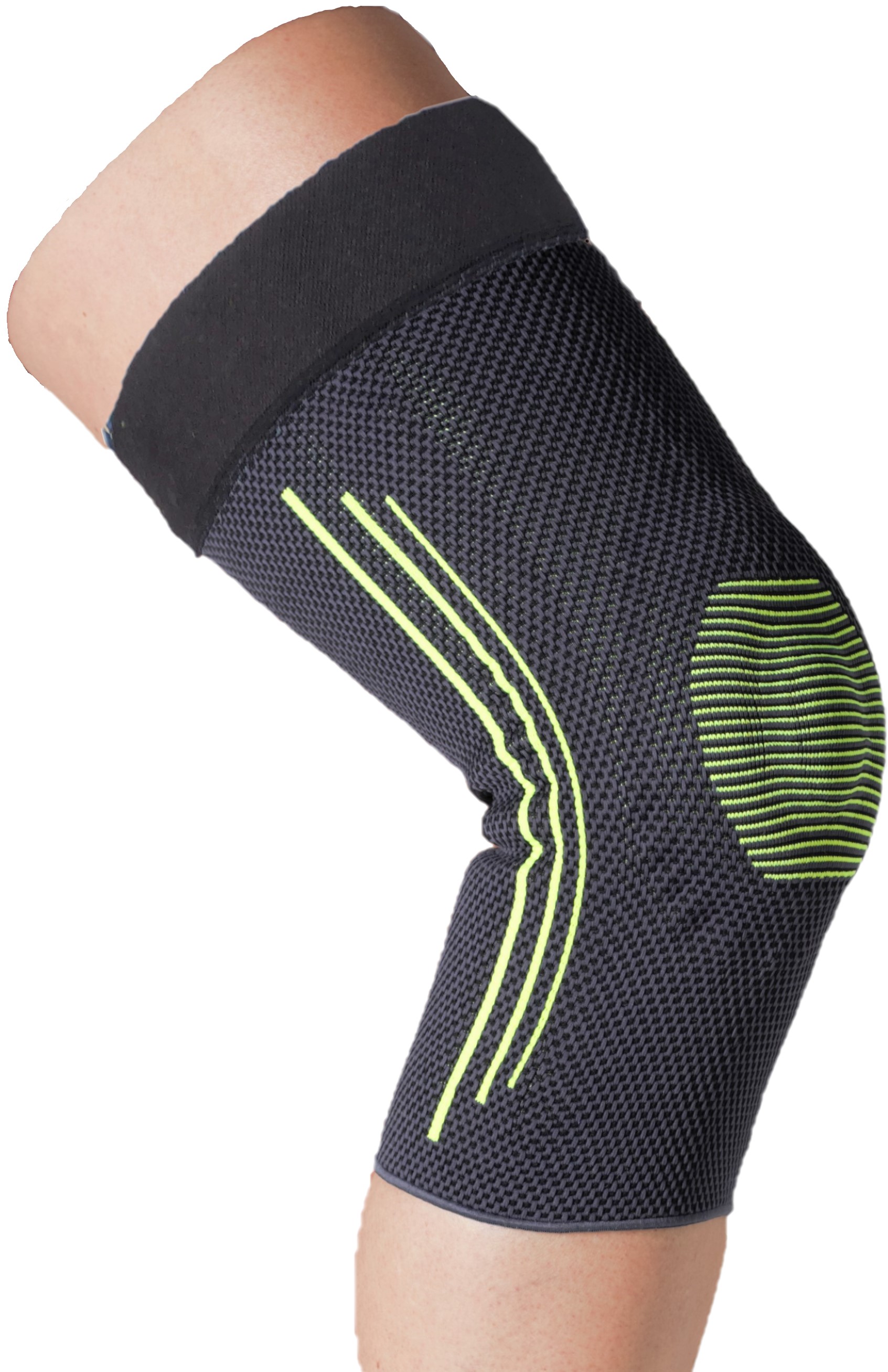 Die Kniebandage Genuvit Comp 650 ist im Rundstrickverfahren hergestellt. Das kompressive Gestrick und die seitlich eingearbeiteten Spiralfedern geben dem Knie Halt und Führung. Die Patella wird von einer Silikonringpelotte umschlossen und massiert den Bereich. Die optimale Passform und die Komfortzone im Kniegelenkbereich unterstützen die natürlichen Bewegungsabläufe des Knies und verbessern die Körperwahrnehmung. Das neuartige nahtlose 3D- Rundgestrick erhöht den Tragekomfort. Zusätzlich wurde das Gestrick der Genuvit Comp 650 mit Aloe Vera Duft Mikrokapseln veredelt. Die Größen XXL+ und XXXL+ sind zusätzlich auch mit Haftband erhältlich.