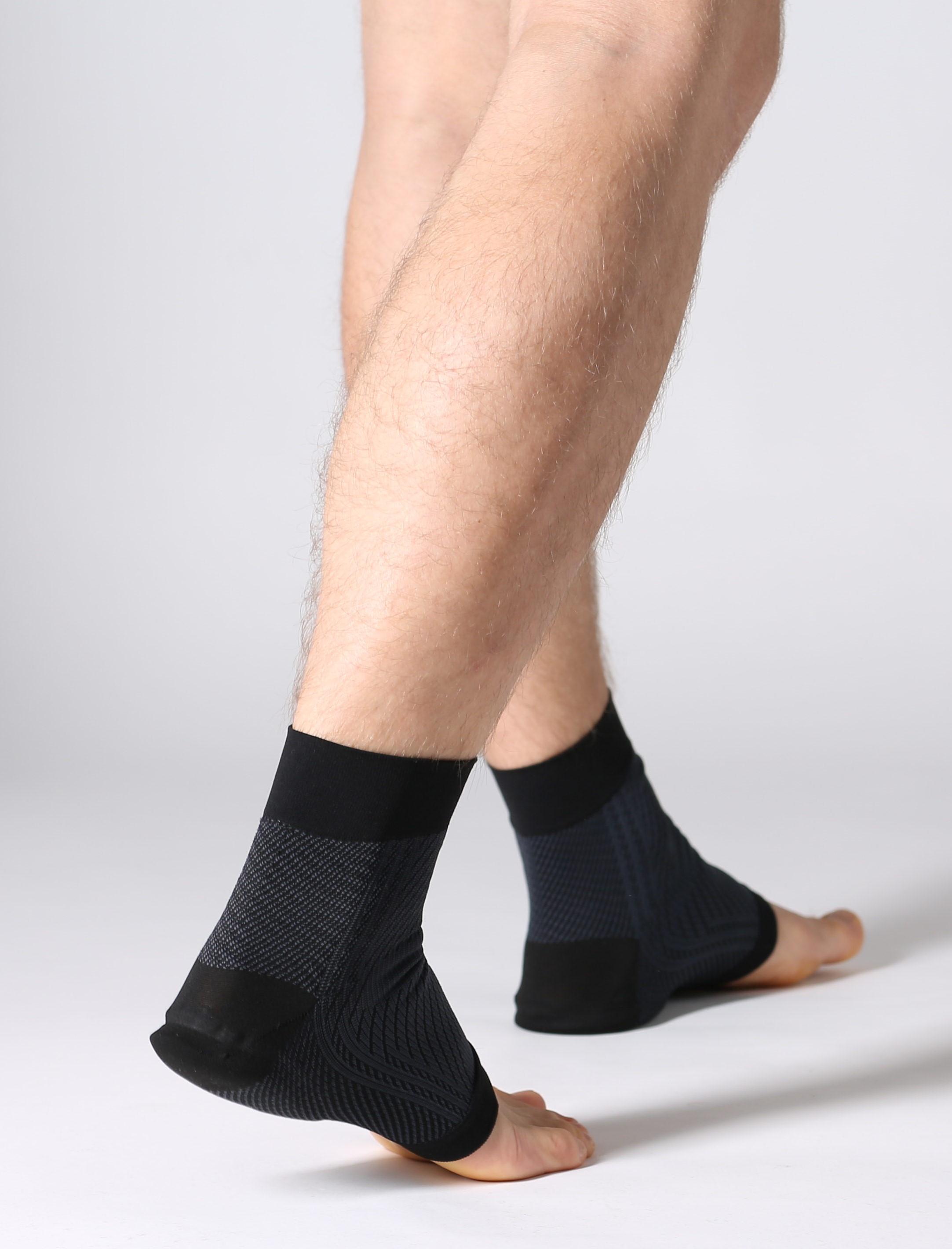 Durch die multizentrisch variable Kompression, die spezielle Stricktechnik und das eingearbeitete Silikonkissen gewährleistet die Sprunggelenkbandage einen hohen Tragekomfort und eine effiziente Wirkung. Durch die Stoßabsorbierung werden Ferse, Gelenke, Bänder, Muskeln, Sehnen, Hüfte, Knie und das Sprunggelenk wirkungsvoll entlastet.