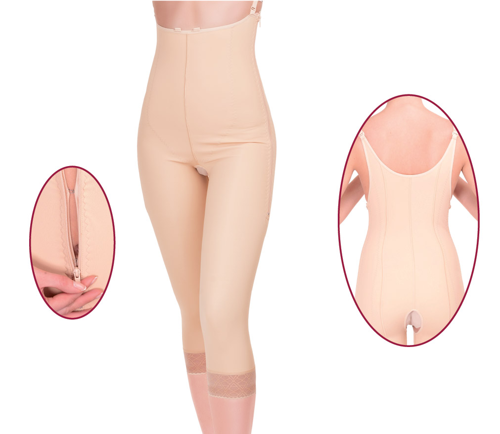 Die Orpedo Kompressionshose Capri lässt sich an beiden Seiten mit einem Qualitätsreißverschluss schließen. Für ein leichtes Schließen wurden die Reißverschlüsse mit mehreren Haken unterlegt. Die unterfütterten Verschlussleisten garantieren einen hohen Tragekomfort und helfen, das Ergebnis der Operation sicherzustellen.